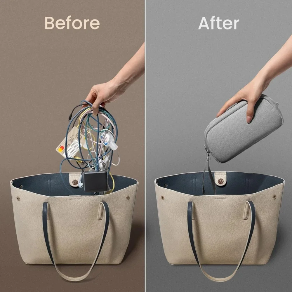 Ideal for the tech-savvy and beyond, this pouch also adapts to store daily items like keys, pens, and personal items. Whether heading to work or traveling, everything is easily accessible